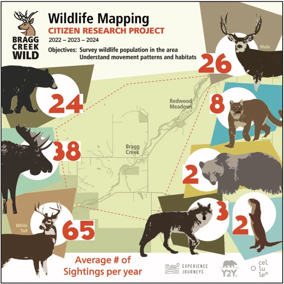 Looking at all sightings and counts observed, here is an update on what the Bragg Creek Wild team have logged: