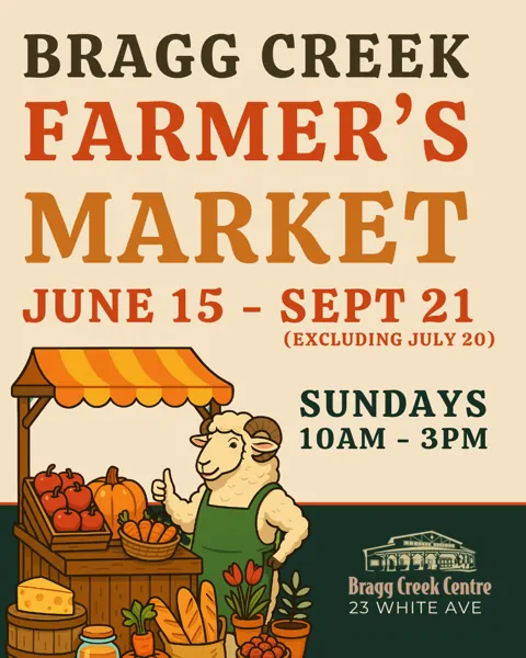 September 21 @ 10:00 am - 3:00 pm Bragg Creek Farmers Market Bragg Creek Farmers Market Bragg Creek Community Centre 23 White Avenue, Bragg Creek, Alberta, Canada