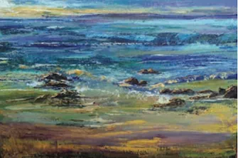 Or I have to scrape it all off and redo part or all of the work, losing elements that I really liked. It’s a big challenge as he struggles to explain what he thinks is wrong, we in turn struggle to understand what he means. I like to paint things not always familiar to him, he wants to make my horses look like burros as that’s what he knows. His art reflects strongly upon his childhood years and memories of standing on shore lighting the way home for his fisherman father. If you want an ocean scene or a boat, he’s your man. His Spanish landscapes of mountains and pueblos are extraordinary. One day I’ll feel inspired to try my hand at one of them. I’ll add one of my watery scenes to this missive for your entertainment.