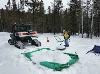 In order to adapt to these rapid and unpredictable changes, BCT has had to adopt practices such as snow harvesting to help protect rapidly deteriorating ski trails. Snow is relocated from areas where it accumulates naturally or is less vulnerable to melt and wind, and strategically placed on critical trail sections, corners, and thin spots to help preserve the ski base for as long as possible. This is a time and labour intensive process, and even then, it can only do so much when warm temperatures and strong chinooks persist. Much time is spent nervously watching weather forecasts for possible relief and a return to winter conditions.